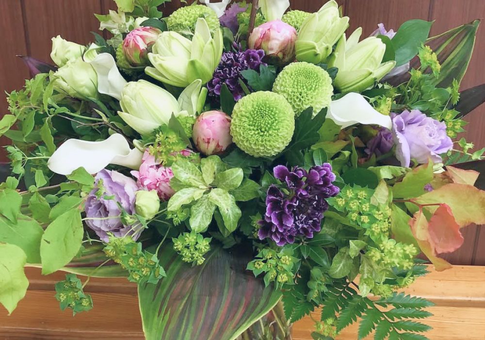 花のブルーメンノイエでは、国家資格1級を持つスタッフが、ご注文に合わせて鮮度と品質を見極めた花材を選び、丁寧に仕上げています。