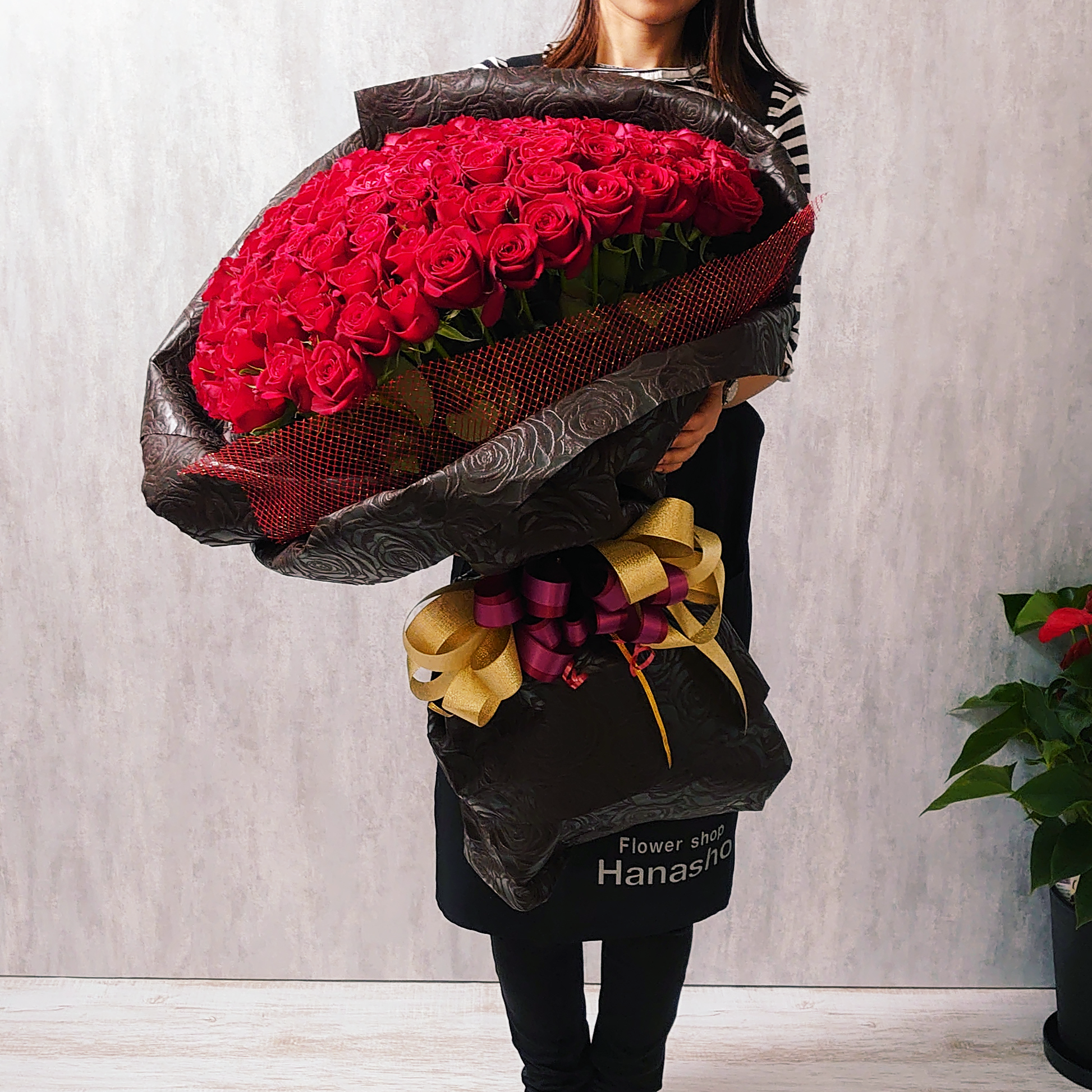108本の赤バラは「結婚してください」の花言葉を持ち、プロポーズに最適な豪華な花束です。情熱的な赤いバラが、岡山市での特別な瞬間を美しく演出し、永遠の愛を伝えます。圧倒的なボリュームと華やかさで、一生の記念にふさわしい贈り物に。岡山市の花屋「ブルーメンノイエ」が、新鮮な赤バラを厳選し、心を込めてお作りします。