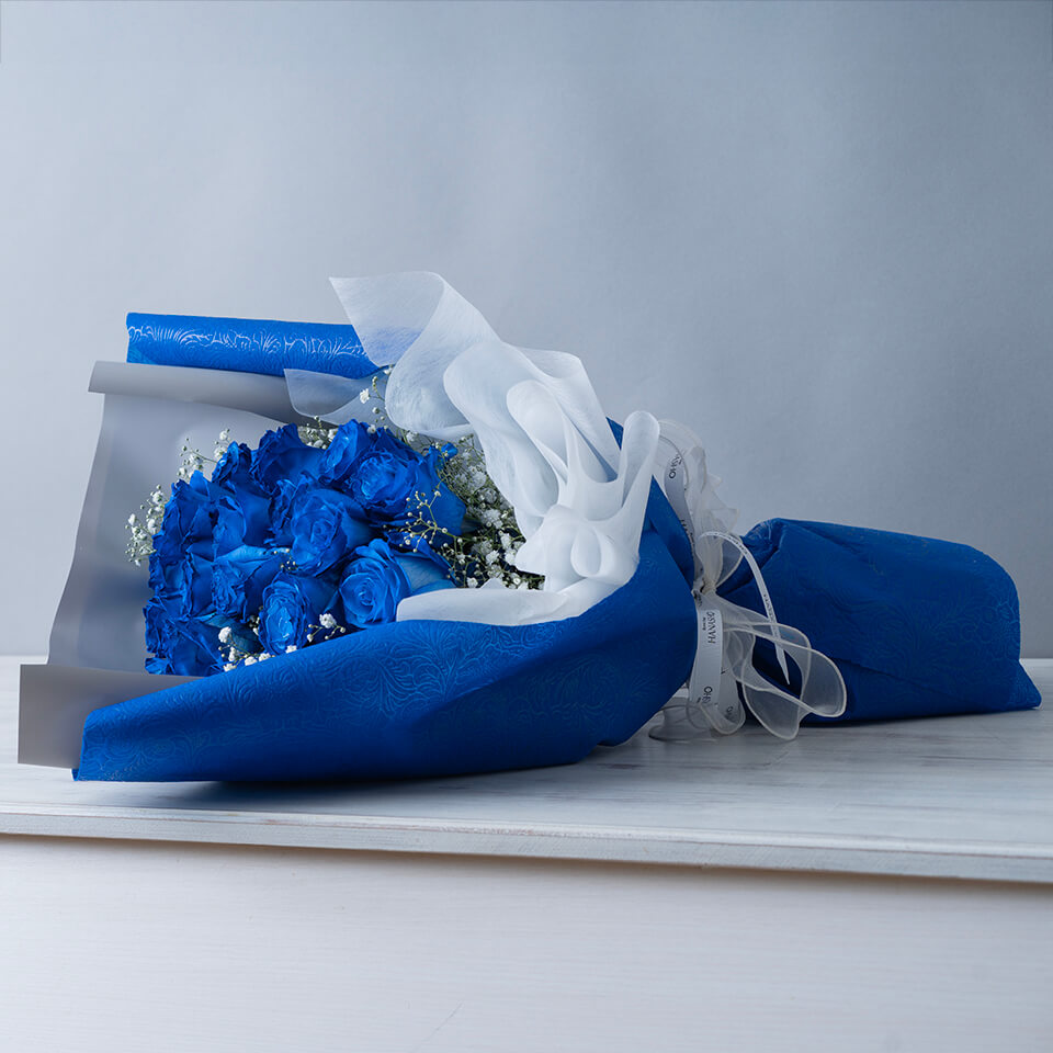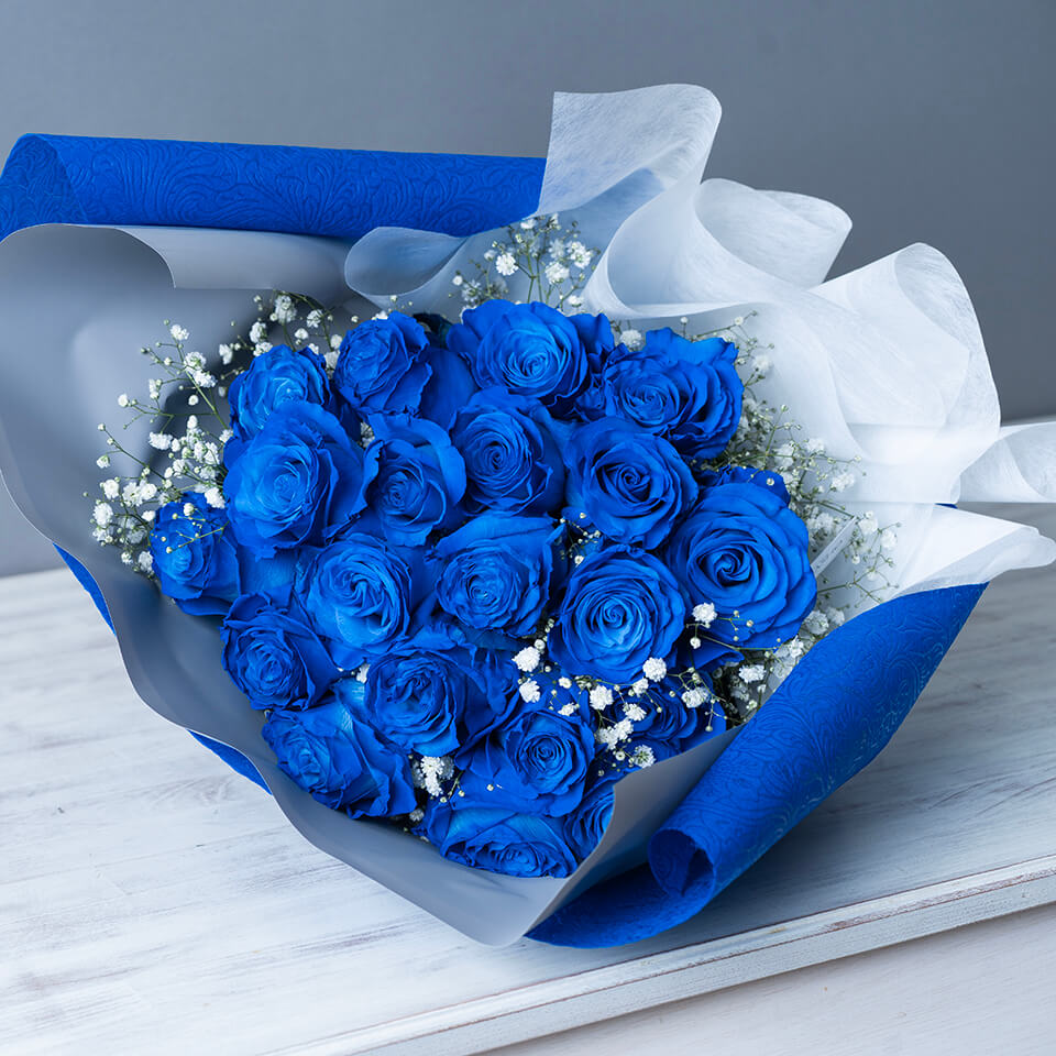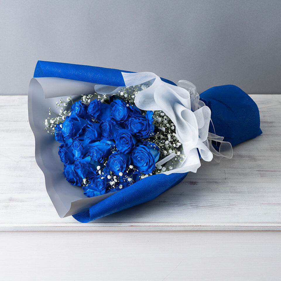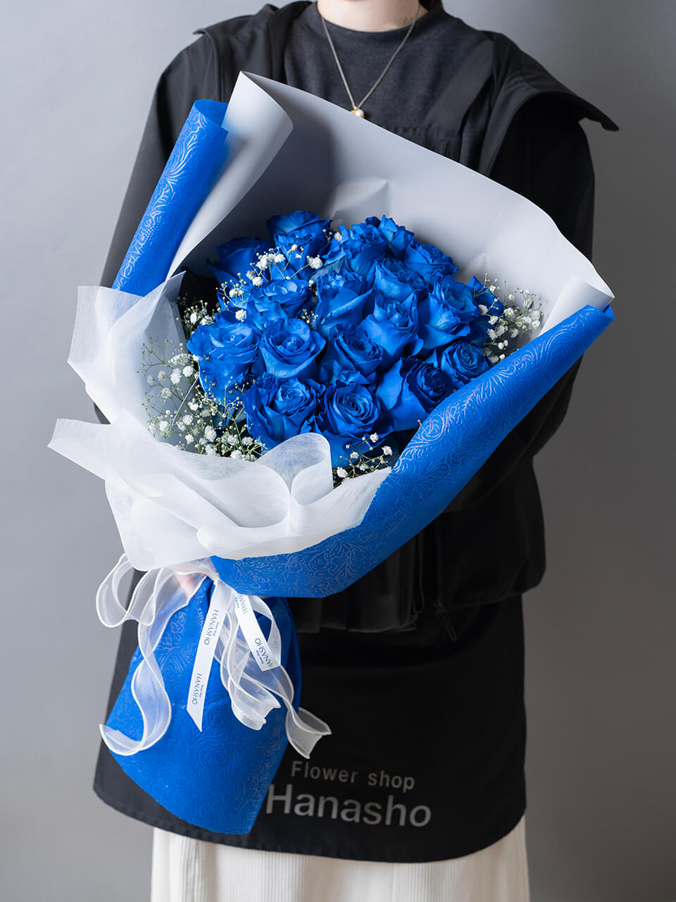澄んだブルーが印象的な、気品あふれる花束です。20本という本数には「大人への一歩」「新たな門出を祝う」想いが込められており、成人の日のお祝いに特におすすめ。晴れの日の記念や、未来へのエールとして心に残る贈り物になります。