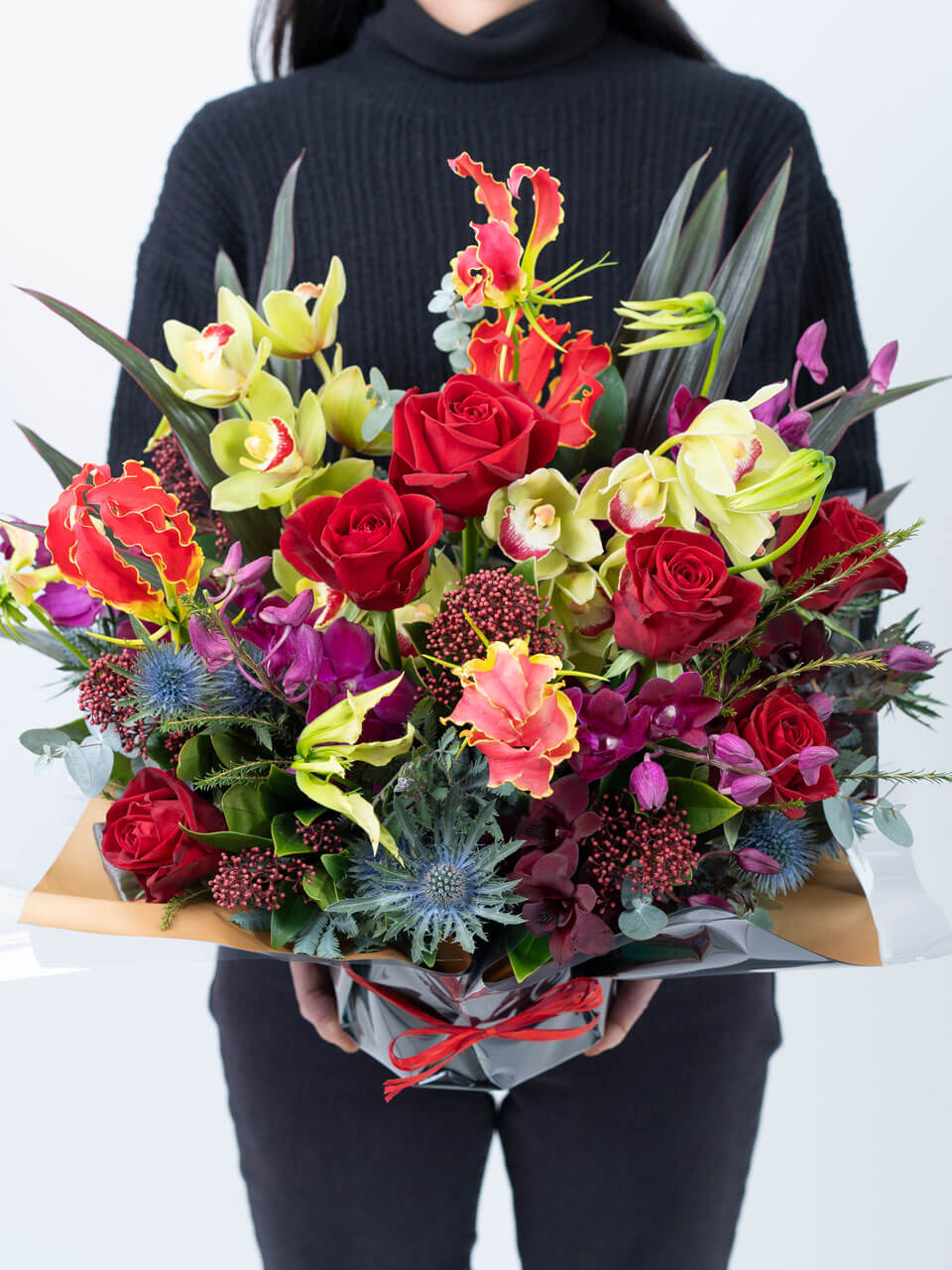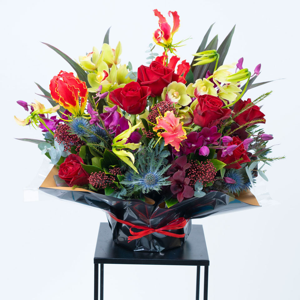 - 使用する花は、季節により発色や大きさが写真と異なる場合がございます。また、天候や仕入れの状況により変更する場合もありますが、ボリューム感や雰囲気は掲載写真にそうよう配慮いたします。花の仕入れは制作・発送の直前に決定するため、花の内容変更について事前にご連絡をすることが難しい場合があることを予めご了承ください。