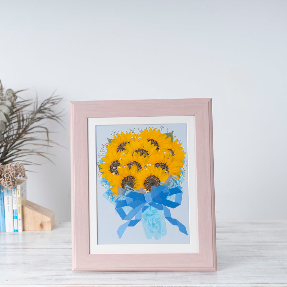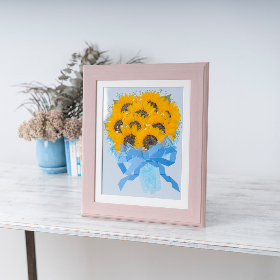 ひまわり・かすみ草 押し花【36額サイズ】【大輪9本、小輪12本に対応】